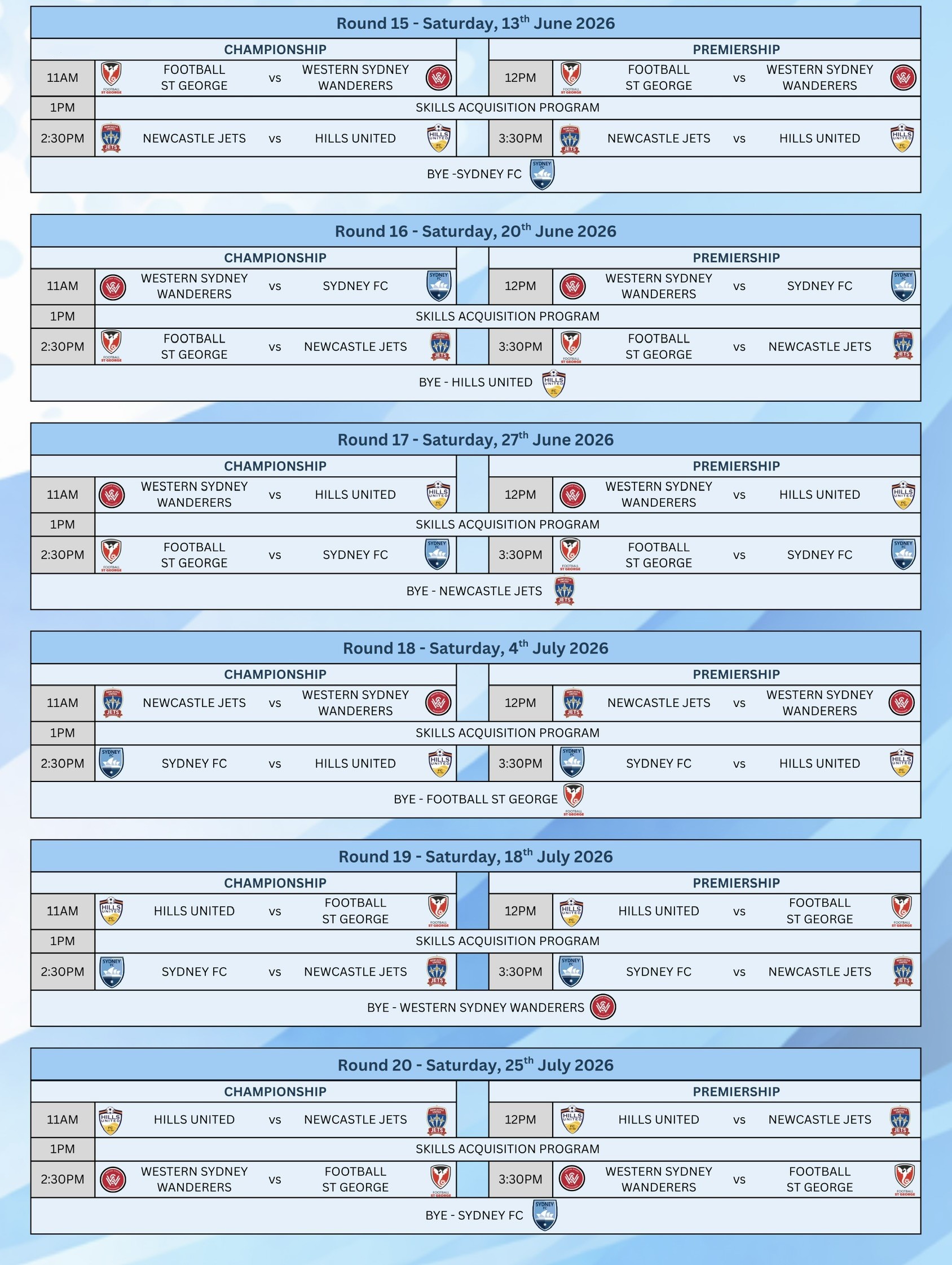 Congratulations to our 2025 Premiers, the Newcastle Jets (Premier League) and Champions, Sydney FC (Reserve Grade)!